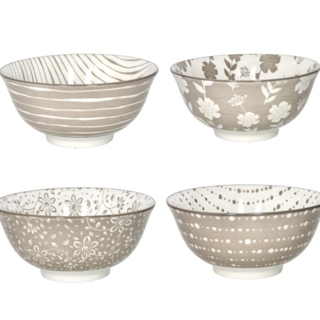 Loto ciotola cm 15 set 4 pezzi tortora porcellana