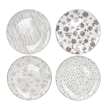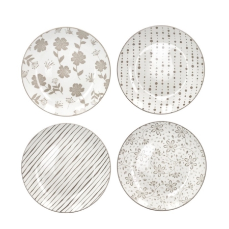 Loto piatti piani set 4 pezzi tortora porcellana
