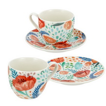 Papaveri set 2 tazzine caffè con piattino porcellana