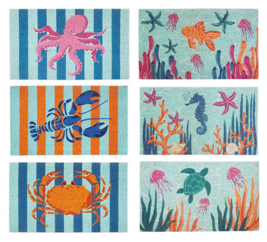 Questo zerbino fa parte della solare collezione dedicata al mondo nautico, perfetta per chi vuole accogliere i propri ospiti con un tocco di freschezza mediterranea. Il design è caratterizzato da motivi a onde e righe dinamiche in varie sfumature di azzurro, turchese e blu navy, che fanno da sfondo a pesci stilizzati dalle grafiche originali. Dalle decorazioni a pois e cuoricini alle trame geometriche più moderne, ogni pesce è un piccolo dettaglio artistico che celebra la gioia dell’estate.