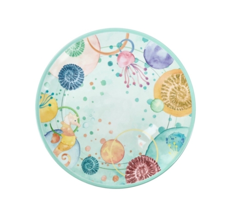 Il Piatto Piano Bollicine firmato Brandani è l’accessorio perfetto per chi non vuole rinunciare all’estetica nemmeno nelle occasioni più informali. Caratterizzato da una splendida fantasia acquerellata che ritrae cavallucci marini, conchiglie e bolle multicolore su fondo verde acqua, questo piatto evoca immediatamente l’atmosfera dell’estate.