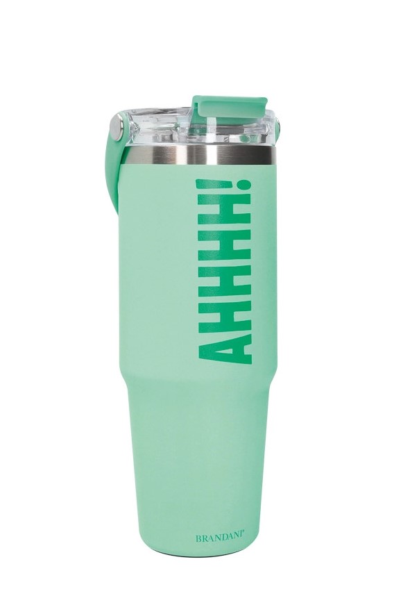 Realizzata in acciaio inox di alta qualità, la bottiglia garantisce una tenuta termica eccellente, mantenendo le tue bevande preferite alla temperatura desiderata per ore. Il design moderno è caratterizzato da una vivace tonalità verde acqua con la scritta “AHHHH!” a contrasto, che richiama la sensazione di sollievo e freschezza di un sorso rigenerante. Il tappo ermetico con maniglia integrata assicura una chiusura sicura a prova di perdite e una facilità di trasporto senza pari.