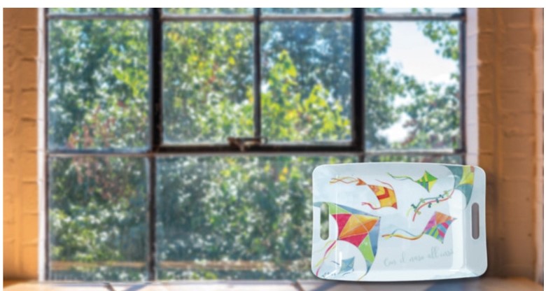 Porta un tocco di colore e praticità sulla tua tavola con il vassoio Aria di Brandani in melamina. Caratterizzato da un allegro decoro di aquiloni che fluttuano leggeri, questo vassoio è perfetto per servire bevande, stuzzichini o per trasportare comodamente tazze e piatti. Realizzato in melamina resistente e leggera, è ideale per l’uso quotidiano, sia in casa che all’aperto. Facile da pulire e maneggevole grazie ai suoi pratici manici, il vassoio Aria unisce funzionalità e design vivace, aggiungendo un tocco di spensieratezza ad ogni occasione. Abbinalo agli altri elementi della collezione Aria per un servizio coordinato e pieno di stile.