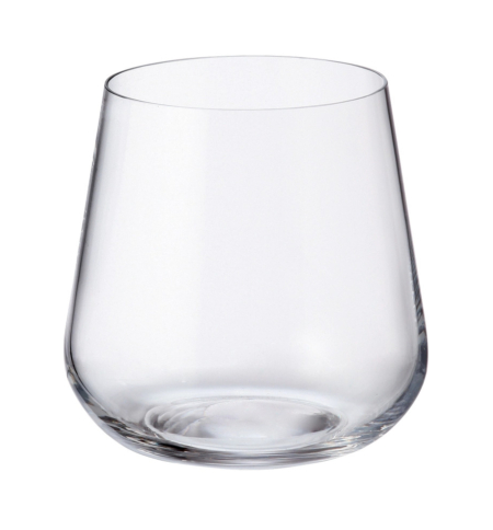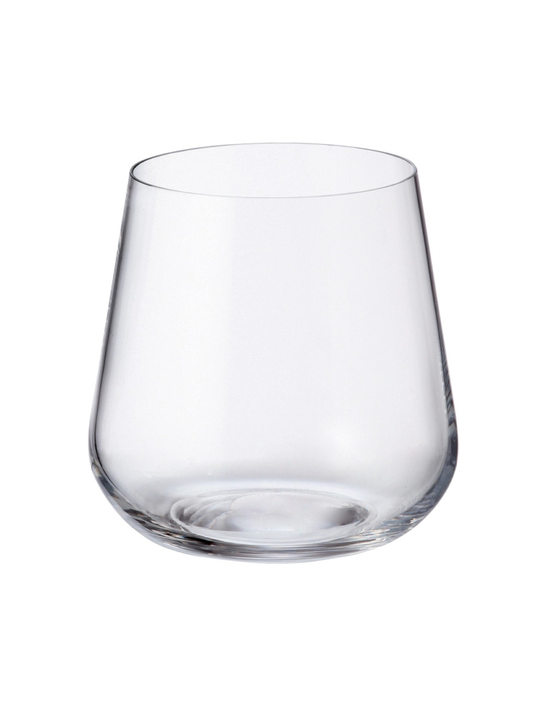 La particolare composizione in Crystal Glass garantisce una trasparenza assoluta, permettendo di apprezzare appieno i riflessi e i colori delle bevande. La forma ergonomica e leggermente bombata alla base non è solo esteticamente raffinata, ma è studiata per favorire l’impugnatura e l’ossigenazione dei liquidi, rendendoli ideali sia per l’acqua che per vini giovani o cocktail.