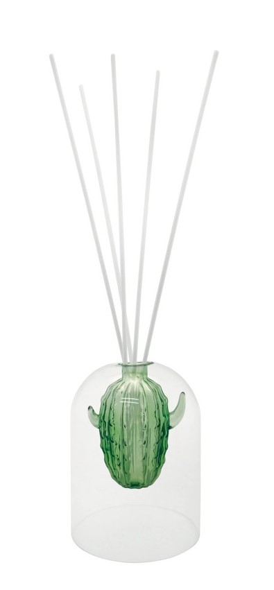 Diffusore di fragranza Brandani a forma di cactus in vetro verde. Unisce un design originale a una delicata diffusione di profumo per i tuoi spazi.