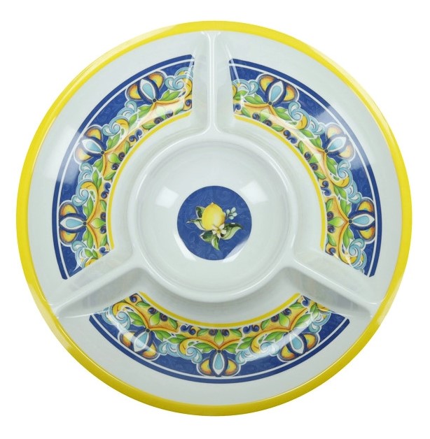 Antipastiera Citrus blu Brandani 30 cm in melamina con scomparti. Ideale per servire stuzzichini con un tocco di colore e praticità.