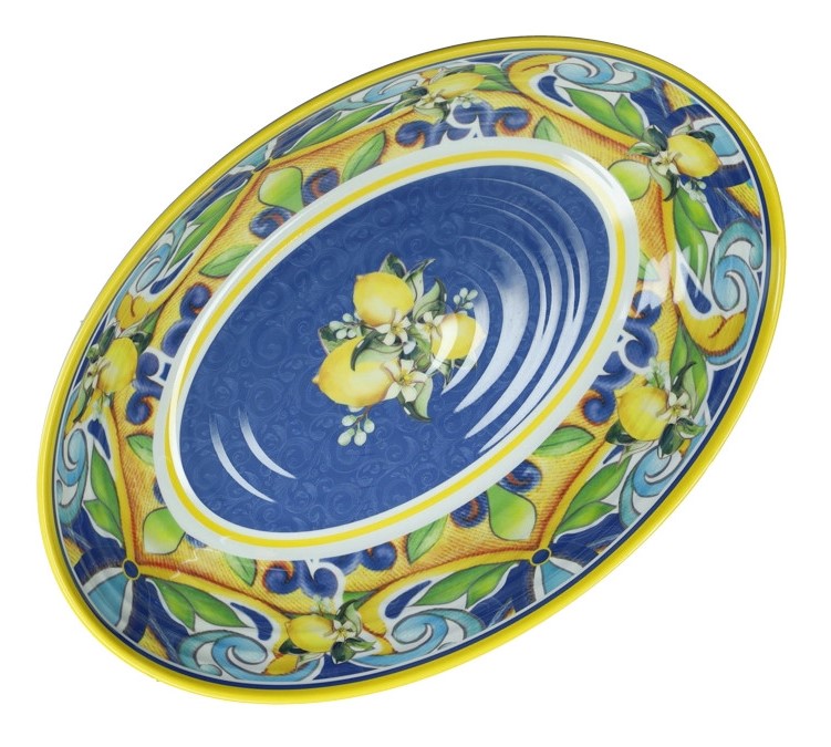 Porta un raggio di sole sulla tua tavola con l’elegante ciotola ovale Citrus blu di Brandani. Realizzata in resistente melamina, questa ciotola da 33 cm combina funzionalità e un design mediterraneo incantevole. La sua forma ovale la rende perfetta per servire antipasti, contorni, insalate allungate o anche come originale elemento decorativo. Il vivace decoro presenta un armonioso intreccio di limoni, foglie e motivi floreali nei toni del blu, del giallo e del verde, evocando la freschezza e la gioia dell’estate italiana. Leggera, resistente agli urti e facile da pulire grazie alla melamina, questa ciotola ovale è ideale per l’uso quotidiano e per le occasioni speciali, sia all’interno che all’esterno. Impreziosisci la tua tavola con lo stile unico e solare della ciotola ovale Citrus blu di Brandani.