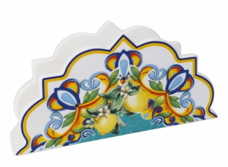 Completa la tua tavola con un accessorio che unisce funzionalità e design vibrante: il portatovaglioli “Citrus” di Brandani. Realizzato in finissima porcellana, questo elegante portatovaglioli è un inno ai colori e ai motivi che caratterizzano le tradizioni artigianali del Mediterraneo, portando un raggio di sole e allegria in ogni pasto.