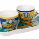 Il design presenta una base bianca su cui spiccano vivaci decori ispirati alle classiche maioliche siciliane e amalfitane, con succosi limoni, foglie verdi e intricate volute floreali in tonalità di giallo brillante, blu intenso e verde brillante. I bordi ondulati e il profilo smerlato riprendono la forma iconica della collezione “Citrus”, aggiungendo un tocco di eleganza e originalità.