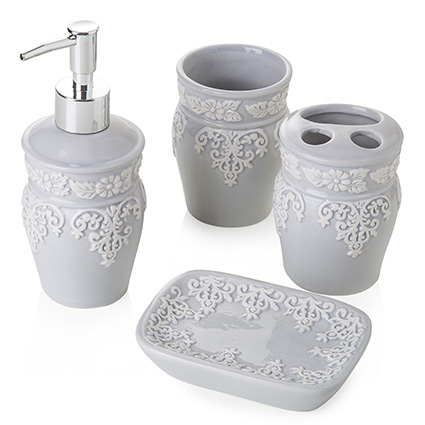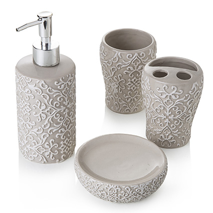 - Dispenser: Per il sapone liquido, con un design coordinato al resto del set.