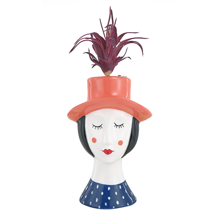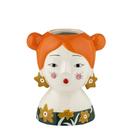 Vaso Coco Girl Cappellone Arancio Ceramica con Piantina Montemaggi