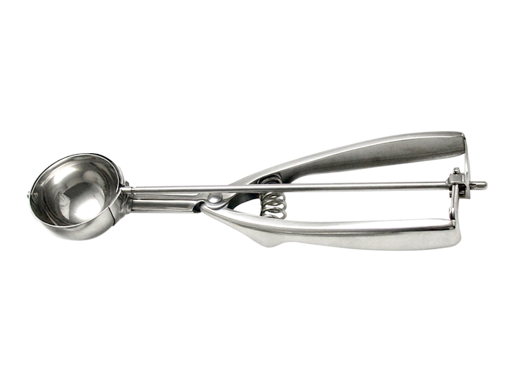 Dosatore per gelato professionale in acciaio inox. Meccanismo a leva per sfere perfette. Resistente, igienico e lavabile in lavastoviglie.
