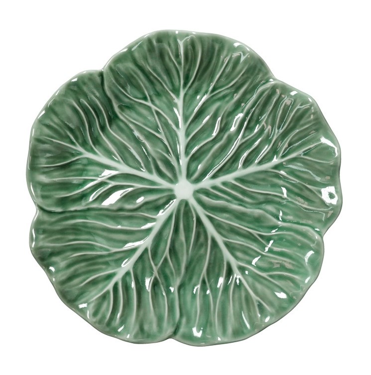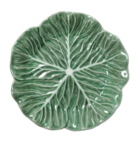 Splendido vassoio Brandani in porcellana verde a forma di foglia di cavolo, diametro 21 cm. Perfetto per servire o come elemento decorativo.