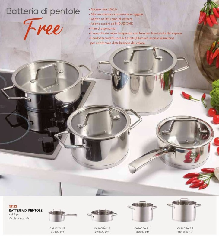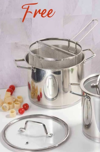 • Free pastaiola-asparagera-pentola acciaio inox cm 18 lt 4,5