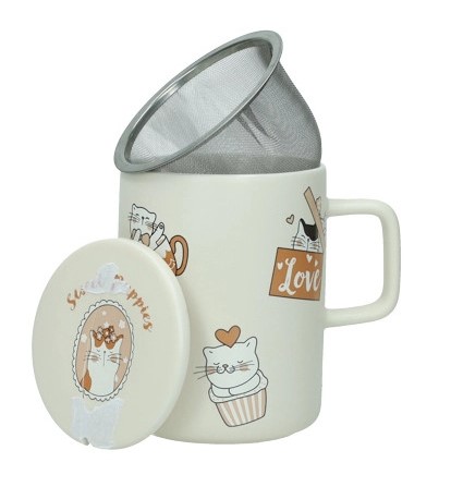 Ma le sue qualità non si fermano all’estetica! La mug è dotata di un pratico tappo in porcellana coordinato, utile per mantenere la tua bevanda calda più a lungo e per proteggerla, e di un filtro in acciaio inox rimovibile. Quest’ultimo è l’ideale per preparare tisane, infusi e tè sfuso direttamente nella tazza, offrendoti la massima praticità senza la necessità di altri accessori.