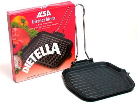 Una bistecchiera quadrata di dimensioni 20×20 cm, prodotta dall’azienda ILSA, famosa per la sua linea di utensili da cucina in ghisa di alta qualità. Questo modello, in particolare, fa parte della serie Dietella, sinonimo di resistenza, durata e performance in cucina.