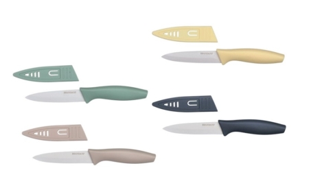 Disponibile in diverse varianti cromatiche moderne (giallo, verde, blu, tortora), il coltello Jolly aggiunge un tocco di colore e dinamismo al tuo piano di lavoro.