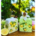 - Forma: Limone stilizzato con foglie verdi