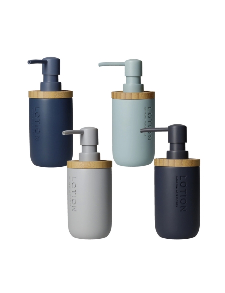 Dispenser sapone Brandani, modello Linear, con coperchio in bambù. Disponibile in vari colori, è perfetto per arredare il bagno con un tocco di stile naturale. Realizzato in poliresina resistente, ha una capacità di 200 ml.