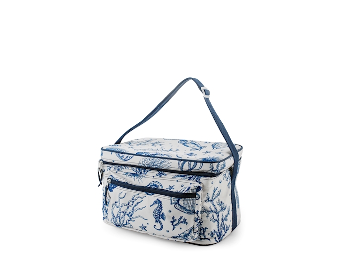 Immergiti nell’atmosfera marina con questa elegante borsa termica decorata. Realizzata in resistente PEVA e impreziosita da un raffinato design a tema marino nei toni del blu e del bianco, questa borsa da 16 litri unisce funzionalità e un tocco di stile nautico. I materiali di alta qualità assicurano un eccellente isolamento termico, mantenendo i tuoi cibi e le tue bevande fresche a lungo. La pratica tracolla regolabile e le tasche esterne con zip offrono comfort e spazio aggiuntivo per i tuoi oggetti personali. Ideale per le tue gite in barca, i picnic sulla spiaggia o per aggiungere un tocco di eleganza alle tue pause pranzo.