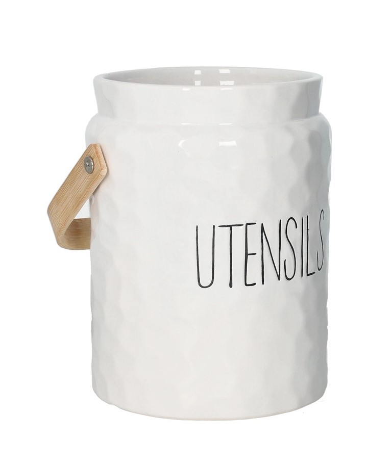 La scritta “UTENSILS” nel tipico font minimalista della collezione New Age permette di individuare subito il contenuto, mantenendo il piano di lavoro in perfetto ordine. Ideale per mestoli, fruste, spatole e cucchiai in legno.