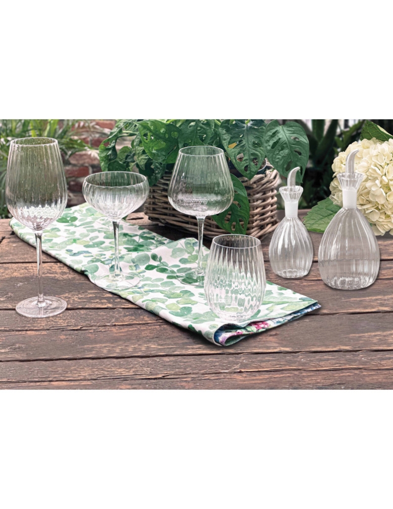 • Design unico: Le sinuose coste che decorano l’intera superficie dell’oliera creano un gioco di luci e riflessi che cattura l’attenzione e dona un tocco di raffinatezza a qualsiasi tavola.