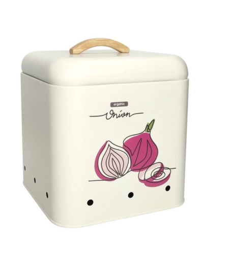 La corretta conservazione delle cipolle richiede un ambiente buio e ben ventilato. Il Barattolo Onion di Brandani risponde a queste esigenze grazie alla sua struttura in metallo opaco e ai fori di aerazione posizionati strategicamente sulla base, che permettono una circolazione d’aria costante prevenendo il deterioramento precoce.
