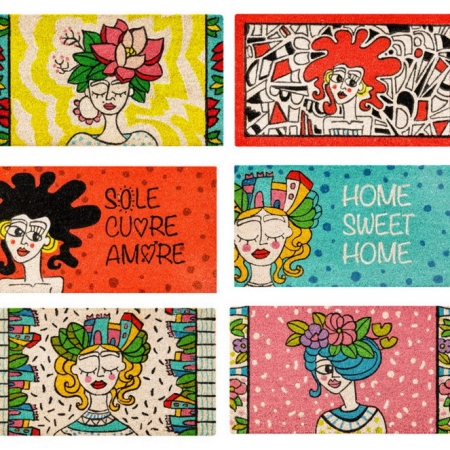 Realizzato in resistente fibra di cocco naturale, garantisce un’eccellente azione pulente sulle suole delle scarpe, intrappolando efficacemente sporco, sabbia e umidità prima che entrino in casa. Con le sue dimensioni di 70×40 cm, si adatta facilmente a qualsiasi ingresso, balcone o veranda. Ogni zerbino è caratterizzato da fantastici design con pesci stilizzati su uno sfondo azzurro mare, con varianti che includono motivi ondulati, coralli o composizioni di diversi pesci colorati. Questo non solo aggiunge un tocco estetico unico, ma è anche facile da mantenere, basta scuoterlo o spazzolarlo regolarmente per rimuovere lo sporco accumulato.