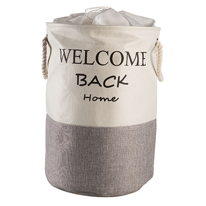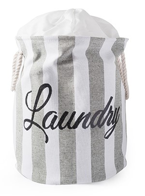 Realizzato in robusto tessuto, presenta un’elegante fantasia a righe verticali nei toni del grigio e del bianco, che si abbina facilmente a qualsiasi arredo, dal moderno al più classico. La scritta “Laundry” in un carattere corsivo e moderno sul fronte aggiunge un dettaglio chic e immediatamente riconoscibile.