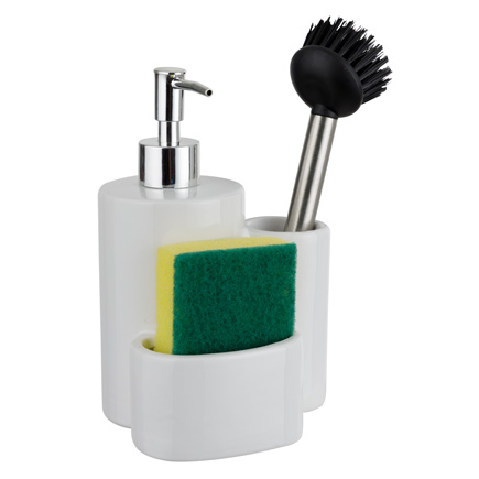 - Dispenser: Un pratico dispenser per il sapone liquido, con un design coordinato al porta spugna.