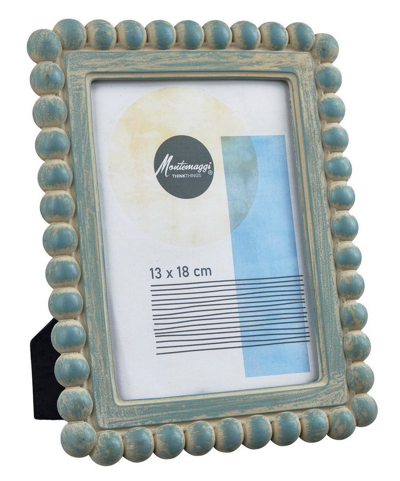 Aggiungi un tocco di eleganza vintage e un colore delicato ai tuoi ricordi più preziosi con il portafoto Montemaggi in resina. Questo delizioso portafoto si distingue per la sua cornice decorata con una fila di pallini che le conferiscono un’estetica unica e giocosa.