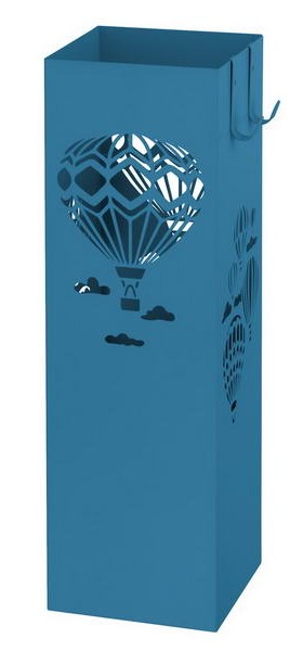 Portaombrelli Montemaggi in metallo blu con base quadrata e originali intagli a mongolfiere. Perfetto per un tocco di design giocoso e funzionale all’ingresso.