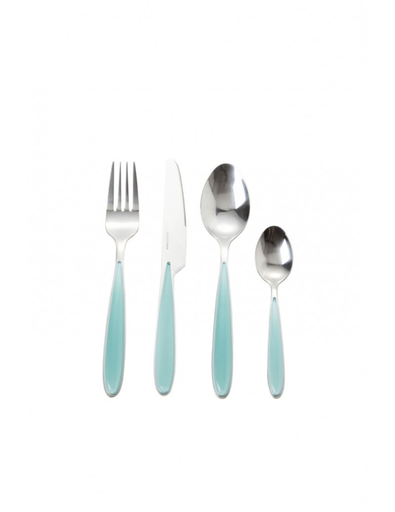 Il Set Posate Acqua Marina 16 Pezzi Inox Lucido Brandani è un set di posate colorato e allegro che porta un tocco di brio alla tua tavola. Realizzato in acciaio inox 18/10 di alta qualità, questo set è resistente, durevole e lavabile in lavastoviglie. Le posate hanno un manico in resina colorata con un design a onde che le rende comode da impugnare e le rende un vero e proprio oggetto d’arredo.