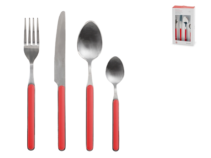 Il set di posate “Domo” è la scelta ideale per chi desidera portare un tocco di colore, modernità e praticità sulla propria tavola. Questo servizio completo da 24 pezzi è perfetto per l’uso quotidiano o per dare un accento vivace durante le cene informali.