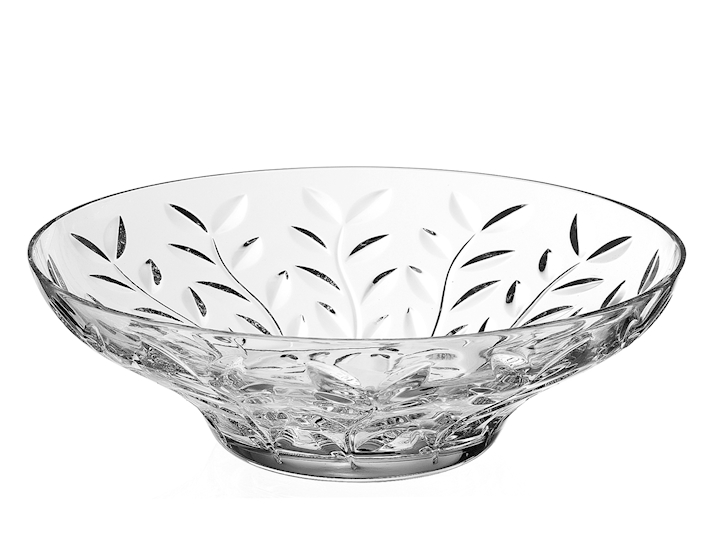 La sua forma ampia e sinuosa, unita alla trasparenza del cristallo, lo rende perfetto per esaltare composizioni floreali, frutta fresca o semplicemente per brillare come un punto luce decorativo. Ogni sfaccettatura del cristallo cattura e riflette la luce, creando un’atmosfera sofisticata e accogliente.