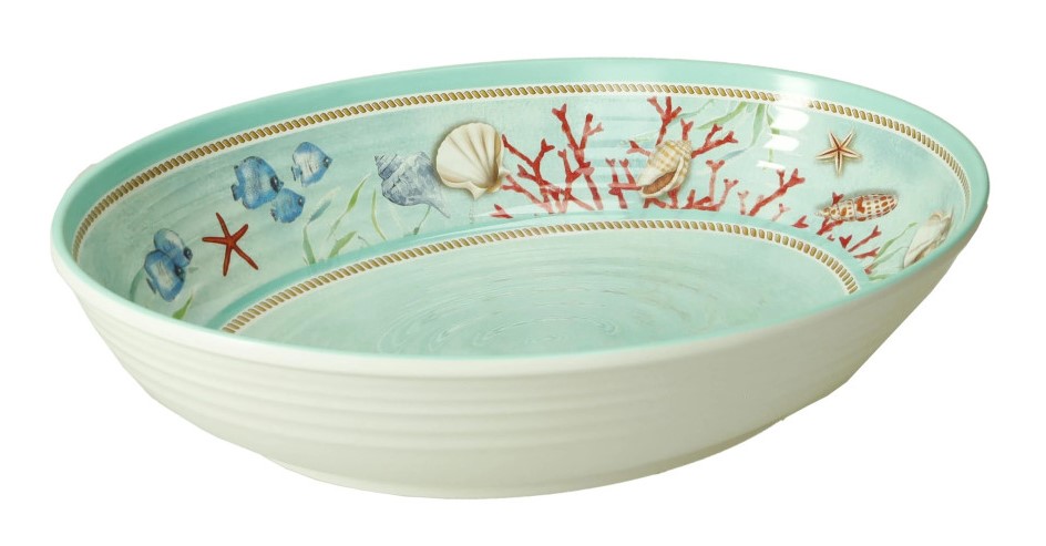Trasforma ogni pasto in un’esperienza marina con la ciotola ovale decoro Reef di Brandani. Perfetta per servire insalate fresche durante una cena estiva o per presentare una colorata macedonia di frutta, questa ciotola aggiunge un’atmosfera vacanziera alla tua tavola. Il suo vivace decoro con elementi della barriera corallina la rende anche un originale oggetto decorativo per la tua casa, evocando la bellezza dei fondali marini.