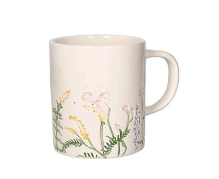 I fiori di campo, declinati in tonalità pastello di giallo, rosa e lavanda, decorano la base della mug, portando la freschezza di un giardino primaverile direttamente nelle tue mani. Lo stoneware è un materiale ceramico eccellente per mantenere le bevande calde a lungo, rendendo questa tazza la compagna ideale per le colazioni invernali o i tè pomeridiani.