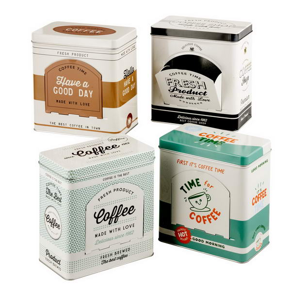Mantieni le tue cialde di caffè fresche e organizzate con le scatole in latta portacialde caffè di Montemaggi. Disponibili in quattro design vintage e accattivanti, queste scatole quadrate sono perfette per aggiungere un tocco di stile retrò alla tua cucina o angolo caffè. Ogni scatola presenta grafiche dedicate al mondo del caffè, con scritte come “Coffee Time”, “Fresh Product”, e simpatici messaggi. Realizzate in latta resistente, queste scatole sono ideali per conservare le cialde in modo pratico ed elegante. Un accessorio indispensabile per gli amanti del caffè e un’originale idea regalo.