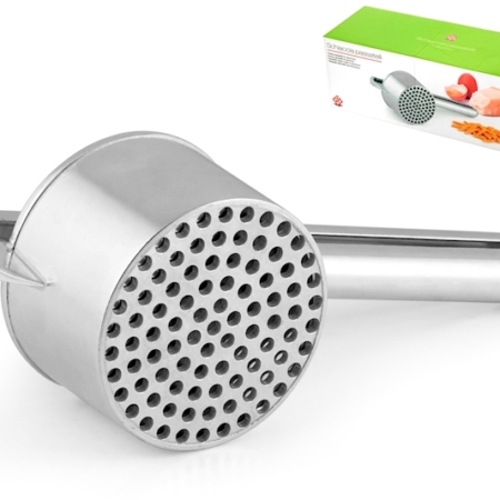 Schiacciapatate Home in Alluminio con 2 Dischi (3/4 mm). Prepara purè di patate perfetti con questo robusto schiacciapatate. Dischi intercambiabili per diverse consistenze. Manico ergonomico per un uso confortevole.
