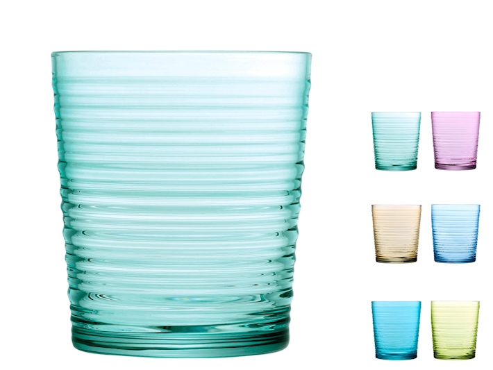 • Groove set 6 bicchieri vetro colori assortiti