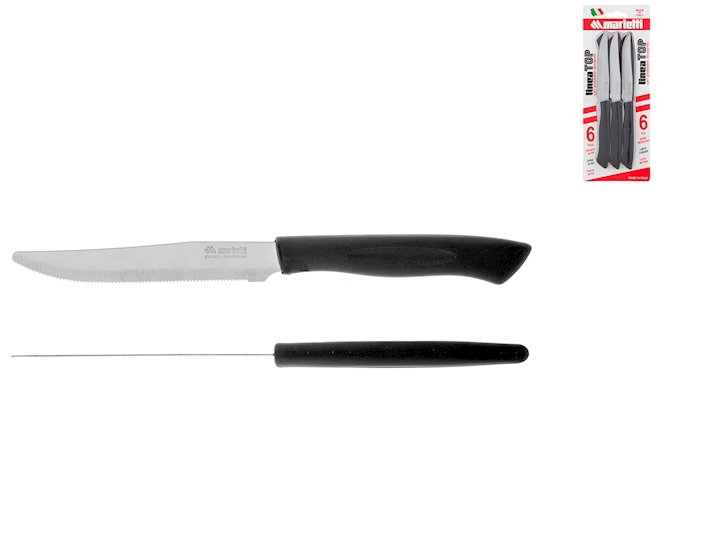 Il set Marietti “Nano TOP” è l’accessorio indispensabile per gli amanti della carne e per chi desidera un’esperienza culinaria superiore. Perfetti per l’uso quotidiano e per le occasioni speciali, questi coltelli combinano durabilità, prestazioni eccellenti e una facile manutenzione. Aggiungete un tocco di eleganza e funzionalità alla vostra tavola con questo set di coltelli Made in Italy.