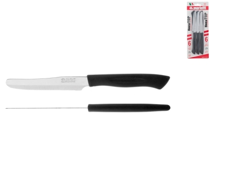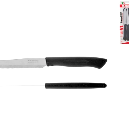 Eleva la tua esperienza culinaria quotidiana con il set di 6 coltelli da tavola Marietti della linea “Nano TOP”. Progettati e realizzati con la rinomata qualità italiana, questi coltelli combinano funzionalità e design elegante per ogni pasto.