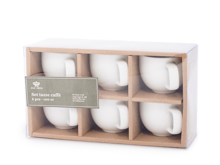 Royal Norfolk CF 6 Tazzine Caffè Porcellana Bianco senza Piattino CC100 è un set di 6 tazzine da caffè in porcellana bianca senza piattino. Le tazzine hanno una capacità di 100 ml e sono perfette per gustare un caffè espresso o un cappuccino. La porcellana è un materiale resistente e durevole che mantiene il calore del caffè. Le tazzine sono lavabili in lavastoviglie e adatte all’uso nel microonde.