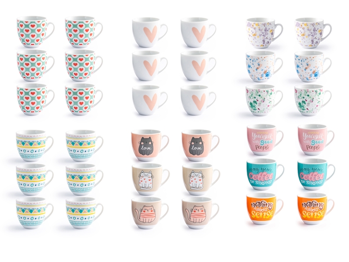 Aggiungi un tocco di allegria e stile alle tue pause caffè con il Set di 6 tazzine da caffè Surrealspring. Questo set unico combina un design moderno con una varietà di stampe che vanno da cuori delicati e motivi geometrici a simpatici gattini e frasi ispiratrici. Ogni tazzina è un pezzo unico, perfetto per chi ama circondarsi di oggetti che riflettono personalità e buon umore. Realizzate in porcellana di alta qualità, sono robuste e adatte all’uso quotidiano, ideali per godersi un espresso in compagnia o da soli.