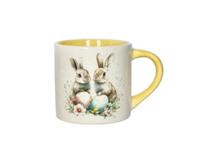 Inizia la giornata con un sorriso grazie alla Mug Sweet Bunny di Brandani. Realizzata in luminosa dolomite, questa tazza da colazione presenta un dolcissimo decoro con due coniglietti, uova pastello e fiori campestri. Con il suo interno e il manico rifiniti in un caldo giallo sole, è il regalo perfetto per chi ama lo stile shabby chic e le atmosfere di Pasqua.