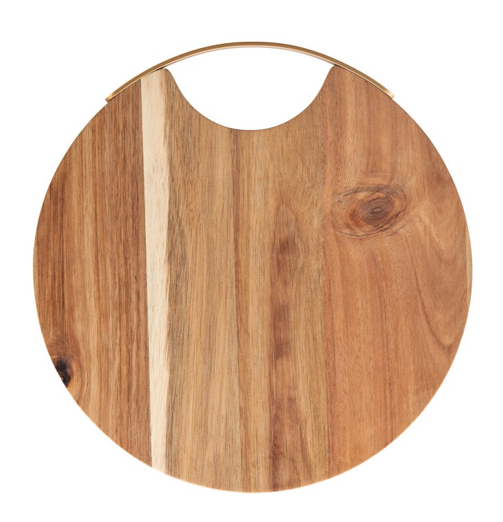Tagliere Brandani tondo Ø 30 cm in legno di acacia con elegante manico in metallo. Perfetto per tagliare e presentare con stile, un must-have per la tua cucina.