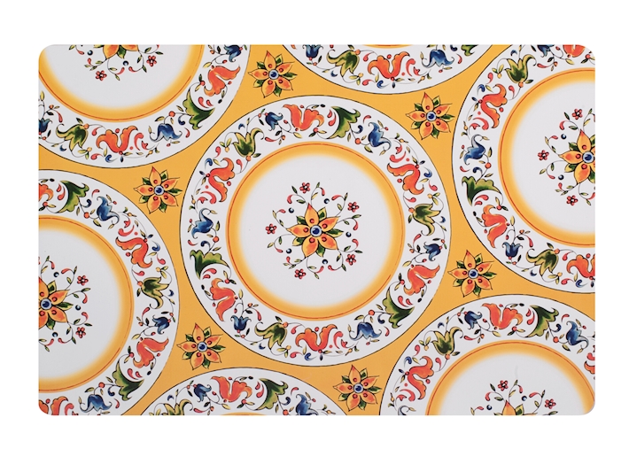 - Design unico: Il motivo a ripetizione di piatti decorati con fiori e volute colorate, tipico della ceramica modicana, conferisce alla tovaglietta un’eleganza senza tempo e un’atmosfera tipicamente mediterranea.