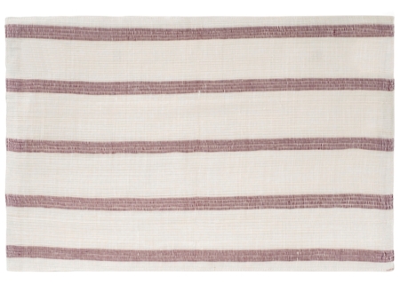 La tovaglietta presenta un design classico con righe orizzontali marroni (o color talpa) su uno sfondo chiaro (avorio/beige). Questo motivo sobrio e accogliente è ideale sia per l’uso quotidiano, come colazioni o pasti veloci, sia per un allestimento più formale che valorizzi le fibre naturali.