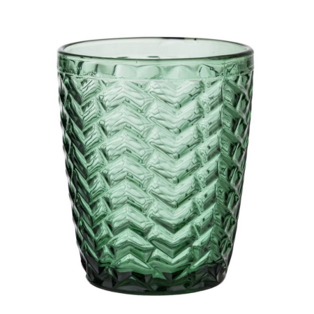 Set da 6 bicchieri da acqua in vetro verde con texture a rilievo. Ideali per un uso quotidiano o per un tocco di colore in più sulla tua tavola.