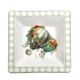 Design Onirico: I due piatti in porcellana sono impreziositi dalle mongolfiere fiorite tipiche della linea, incorniciate da un bordo a losanghe verde e bianco che richiama lo stile vintage chic.